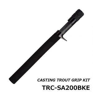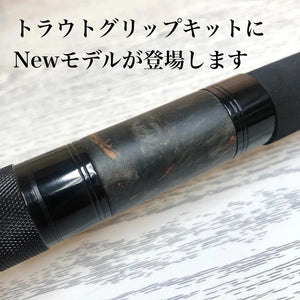 This is a Justace original trout bait grip kit that stops with a front grip (HL type). The seat is made of natural wood dyed black, and the fixing ring is resin-coated with the contacts to be fixed so as not to damage the reel. The rear grip is an integral grip with the end cap together, and the length can also be easily changed by cutting the opposite side of the end cap. https://www.justace.co.jp/cu_item/kit/tr-kit.html Specs ・Rear grip length: 200mm ・Maximum inner diameter: 10mm * The maximum inner diameter is the inner diameter of the wood sheet and cannot be processed largely. ★ Please note ★ ■ Aluminum parts are not glued. Be sure to glue it during production. ■ Since it is natural wood, the pattern is all different.