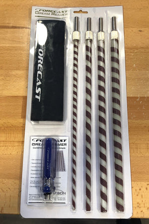Forget using rat tail files. The ForeCast Dream Reamer system with custom tapered shafts streamlines cork reaming and EVA. The larger sizes can double as power drills for those pesky and difficult rod builds. The ForeCast Dream Reamer kit comes with four tapered reamers, a handle, replacement sandpaper, and a cloth storage bag. **** Also sold by individual reamer sizes including the new XXL& XXXL sizes****